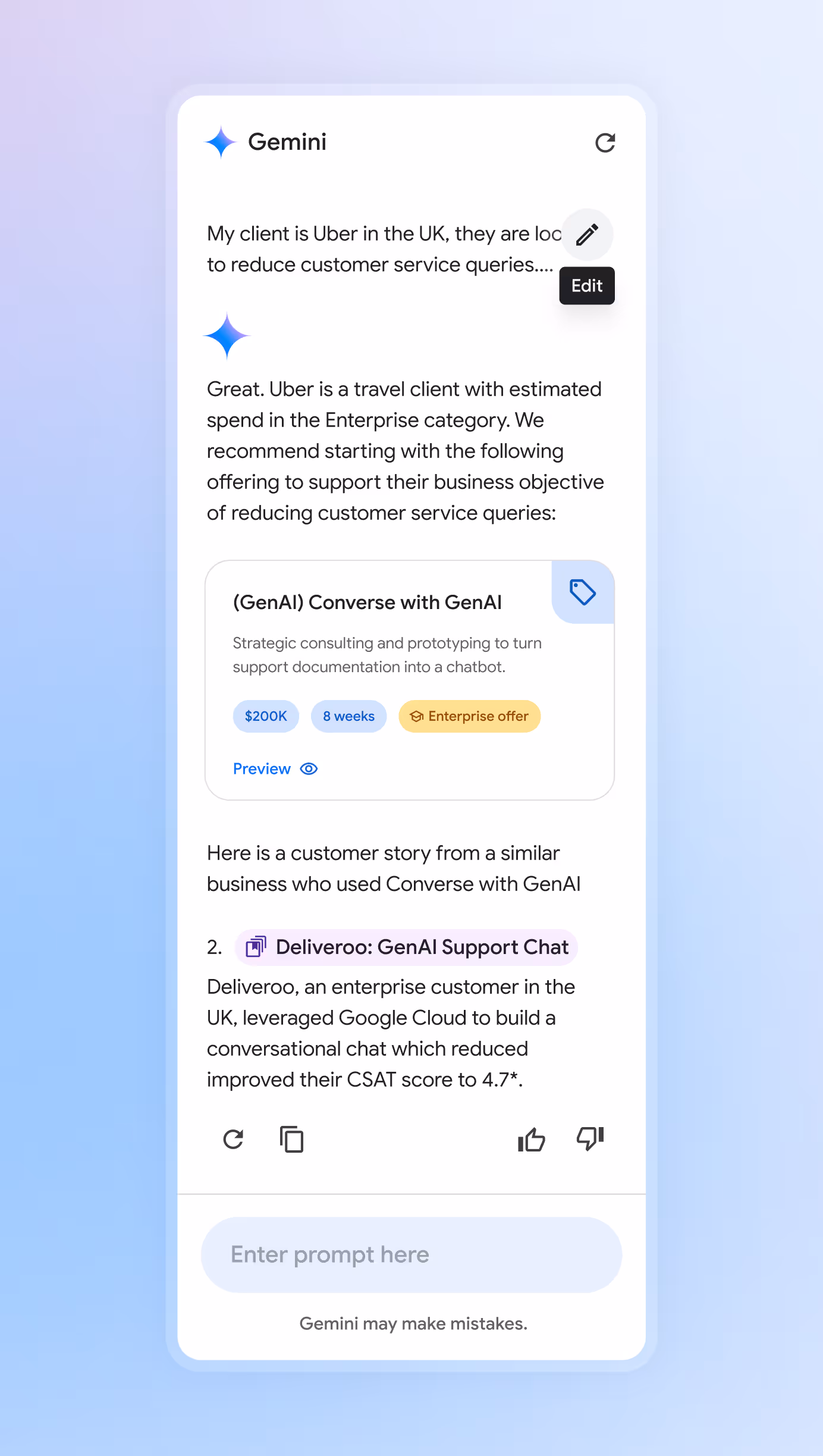 Gemini agents guide sellers step by step through Cloud adoption. Portfolio Builder creates slides &pricing sheets in seconds. Long reads get crushed into quick summaries. Less digging, more doing.